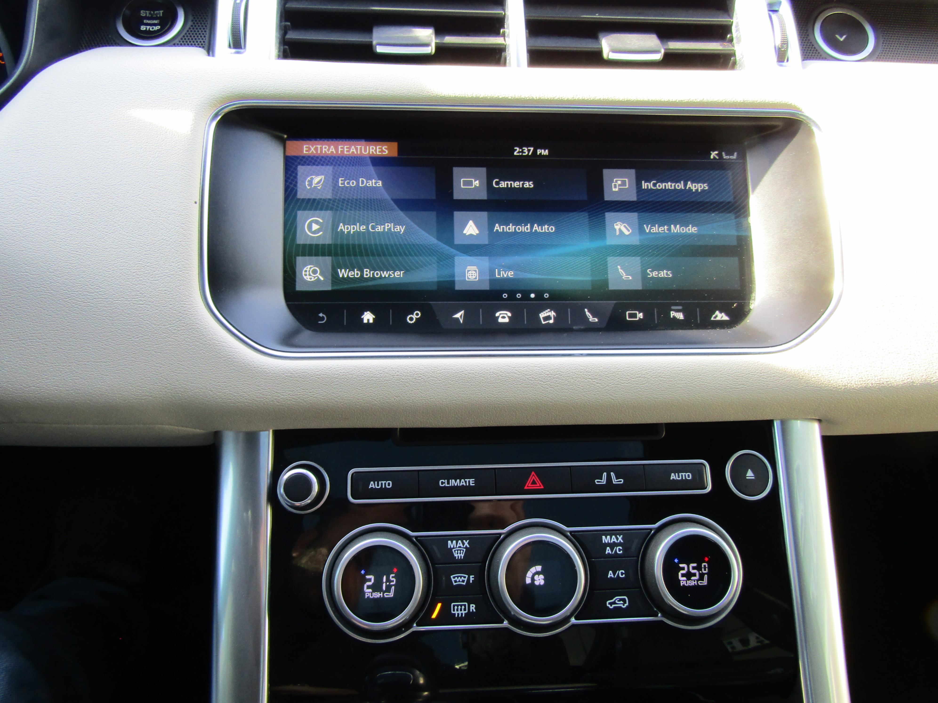 HID headlamps with signature LEDs, heatable power-folding and auto-dimming side mirrors, proximity-sensing keyless entry, a powered gesture liftgate, pushbutton ignition, auto start/stop, an electromechanical parking brake, LED interior mood lighting, a full-colour five-inch TFT instrument cluster, rain-sensing wipers, 250-watt eight-speaker audio, Bluetooth phone and audio streaming, satellite radio, dual-zone auto climate control, a power-adjustable leather-wrapped heatable steering wheel, heated front and rear outboard seats, front and rear parking sensors with a visual display, power-sliding panoramic sunroof, Oxford leather upholstery