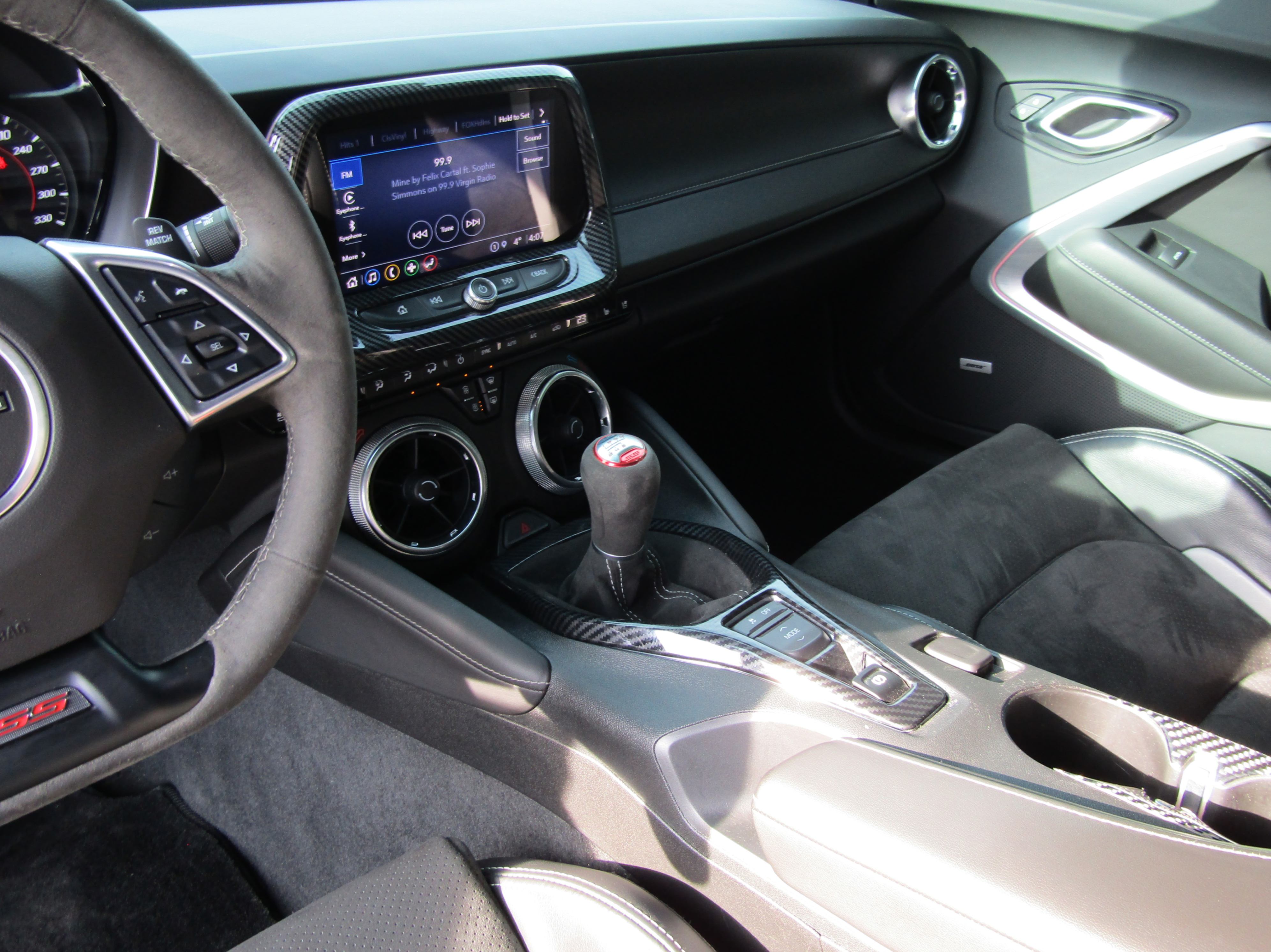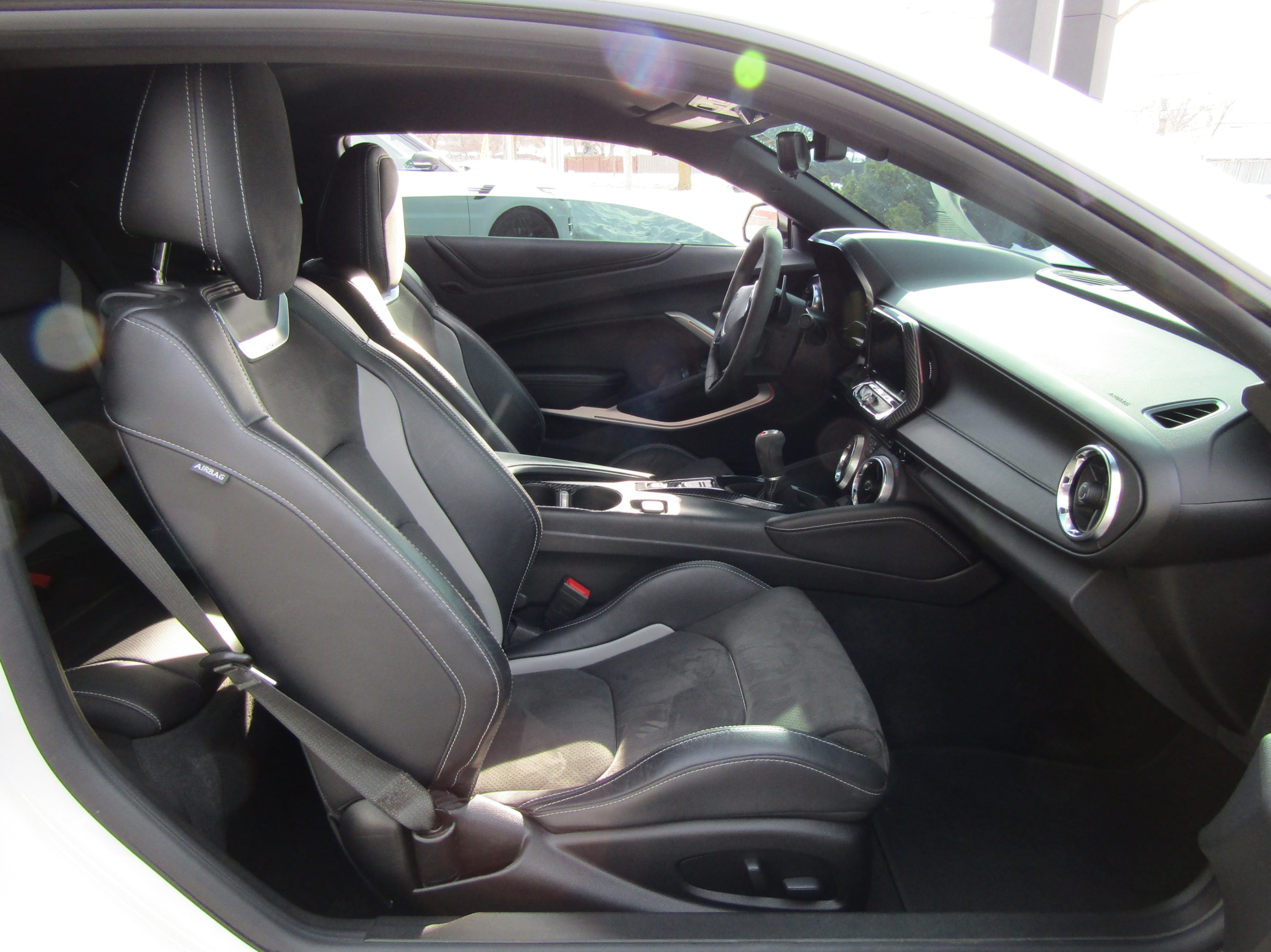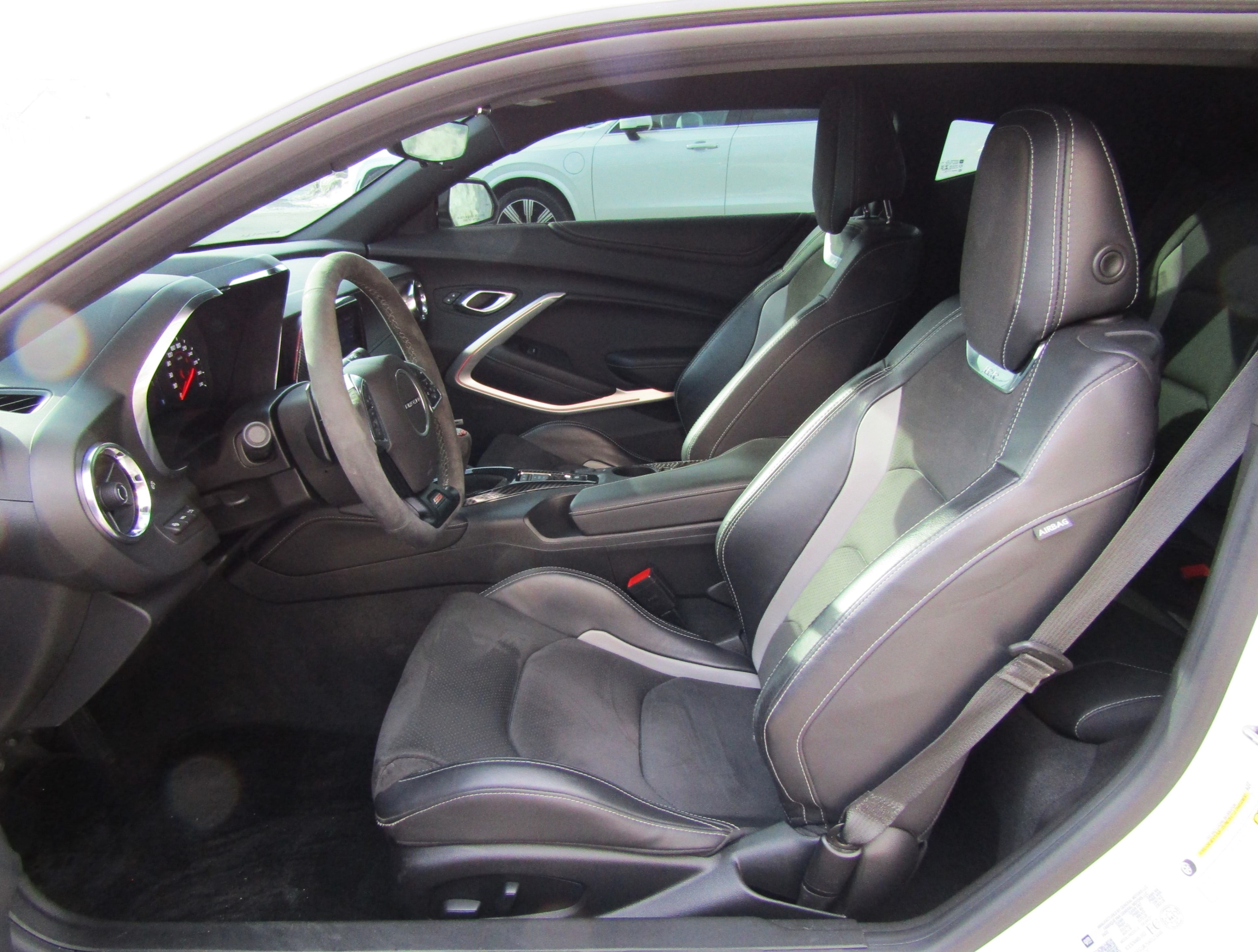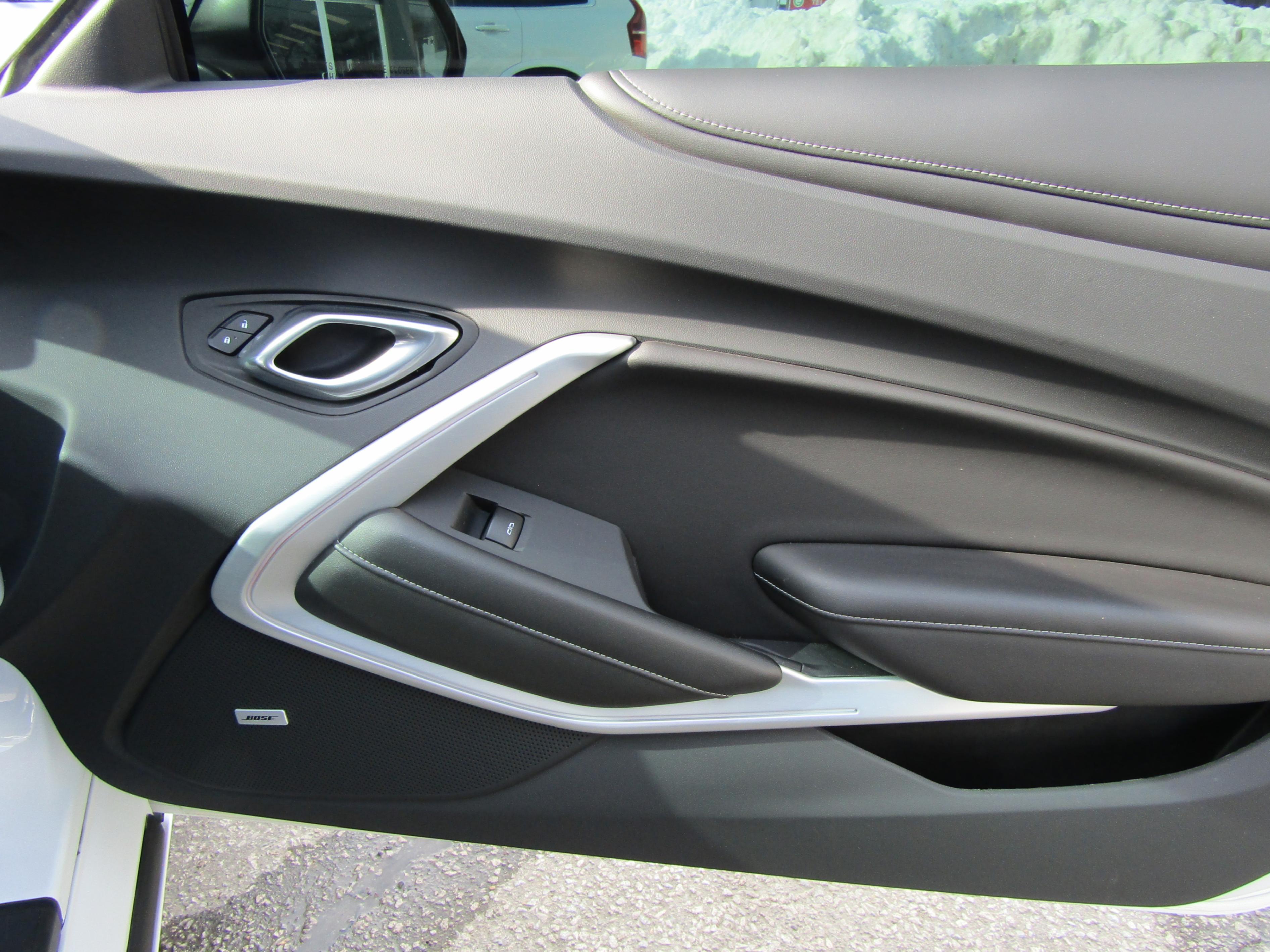 2SS- Accents – aluminum accents on door trim and shifter cap Air conditioning – automatic, dual-zone with individual climate settings for driver and front passenger and outside temperature display Audio – Bose premium 9-speaker (Coupe) or 7-speaker (Convertible) system Forward Collision Alert1 (Coupe) Head-Up Display – color digital display with readouts for vehicle speed, tachometer, selected gear, g force, high beam indicator, turn signals, outside air temperature, audio system, turn-by-turn directions and phone information Lane Change Alert with Side Blind Zone Alert1 Lighting – interior spectrum with 24 different color selections Memory – recalls two presets for power driver seat and outside rearview mirrors Rear Camera Mirror1 Rear Cross Traffic Alert1 Rear Park Assist1 Seats – heated and ventilated leather-appointed driver and front passenger Sill plates – illuminated Steering wheel – heated Wireless charging